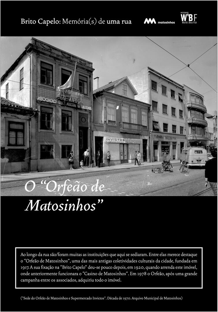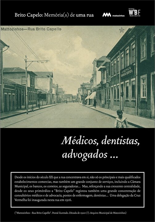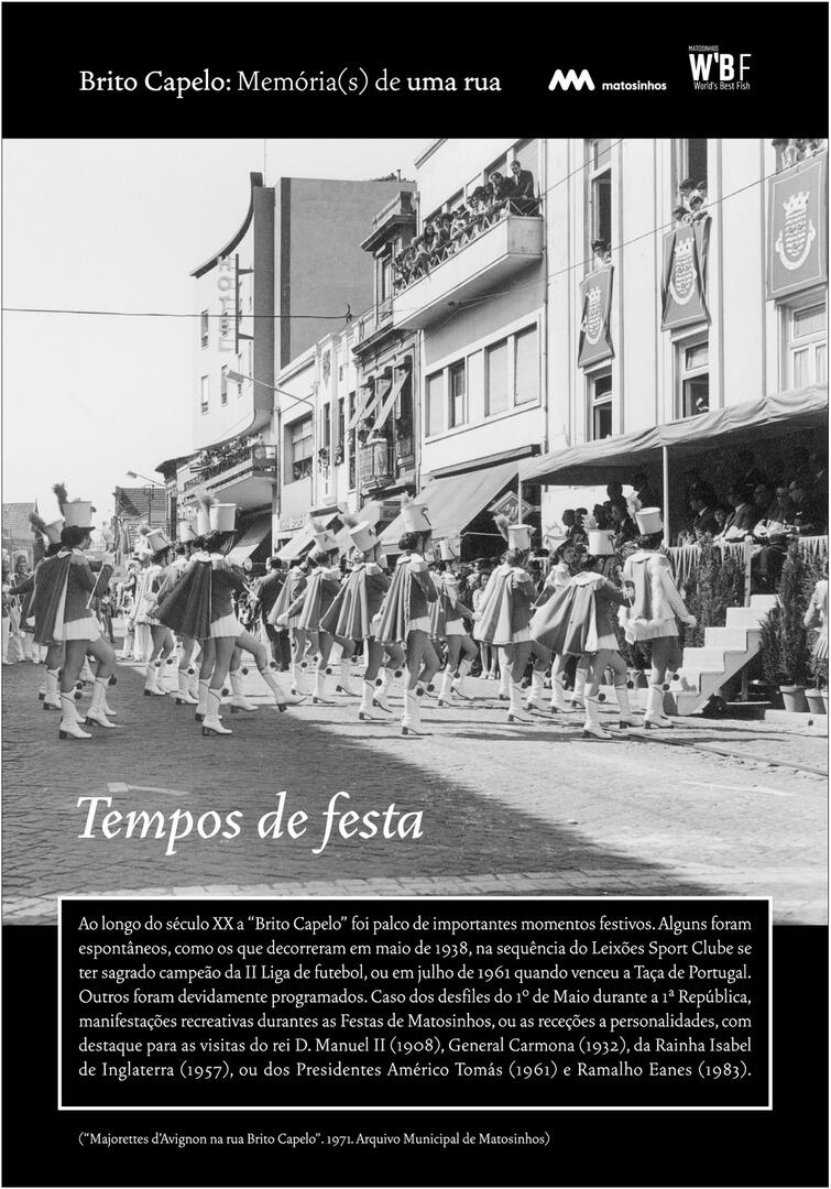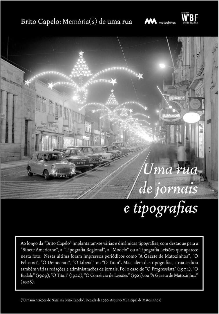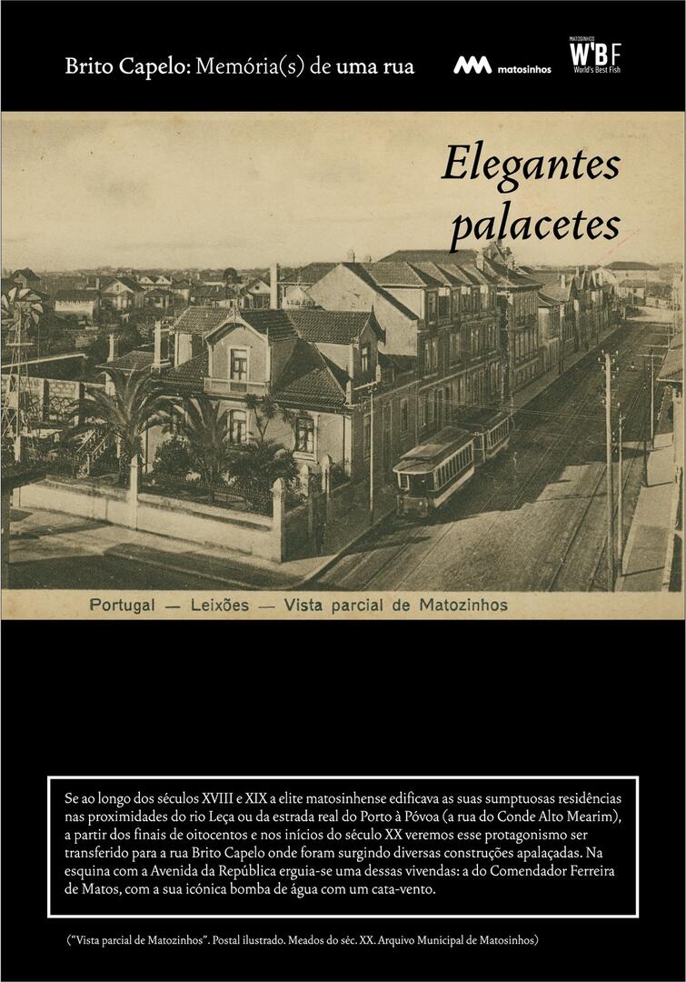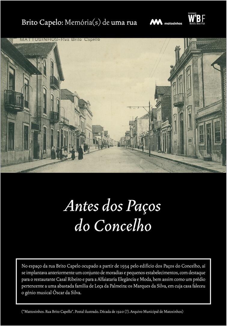 Inicialmente designada Rua do Juncal de Cima, Brito Capelo veio a transformar-se no eixo estruturante de Matosinhos, acolhendo o comércio e a indústria, os cafés e os hotéis, o carro americano, o comboio, o metro, a biblioteca ou os paços do concelho.