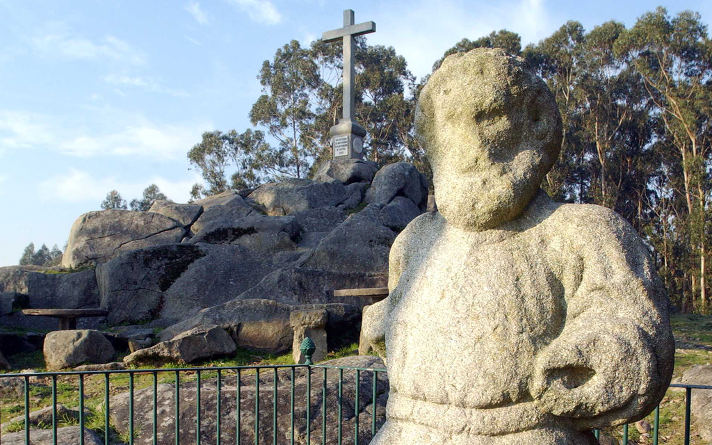 Em Santa Cruz do Bispo, no Monte de São Brás, zona densamente arborizada, encontra-se um conjunto escultórico, que data dos tempos da ocupação romana, e que integra um homem, já sem braços, supostamente um guerreiro a ostentar uma arma (maça).